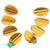 Wunderschöne, leicht gebogene Studs in Form eines Blattes, vergoldet und mit ungeschliffenen Rohsmaragden besetzt.